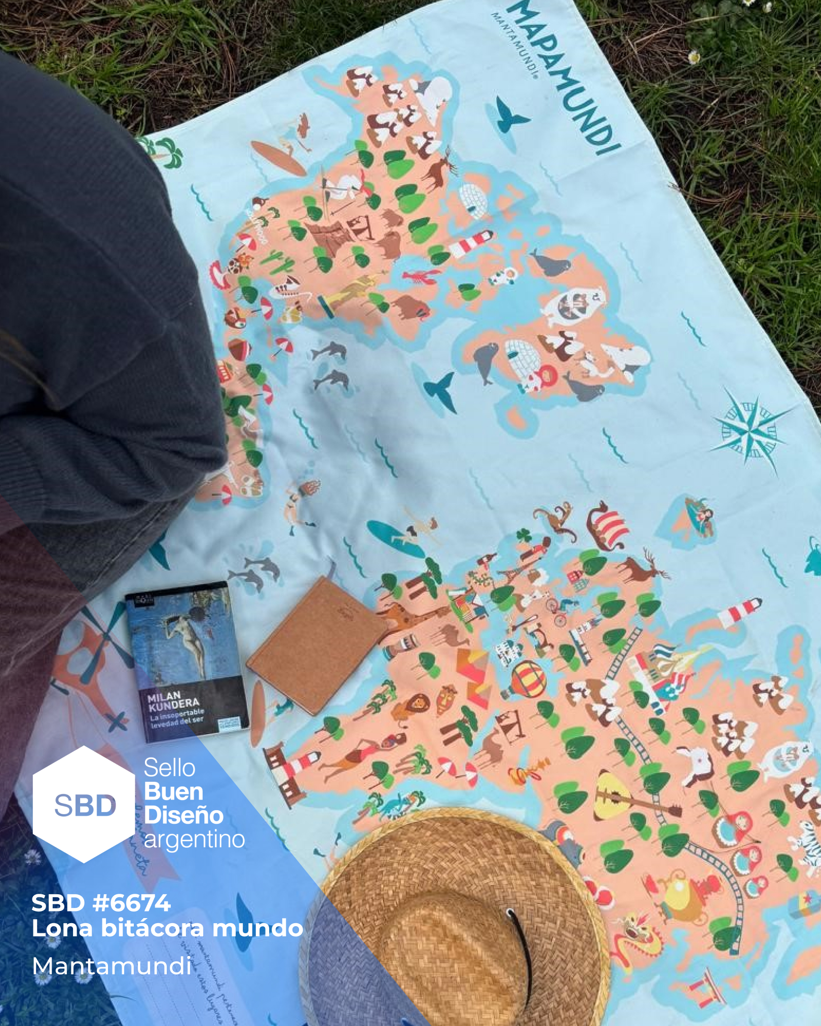 Distinguida con el sello del Buen diseño Argentino! Lona del MAPAMUNDI. 1.30 x 1.50 m en gabardina
